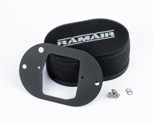 Ramair’s hugely successful range of carb filter kits, designed to bolt directly to the carburettor body, is used widely in both competition and street applications. The element is of sturdy construction, supported by a stainless steel cage which provides maximum surface area to optimise the airflow for induction ramming. The range of baseplates are cut for a variety of well known carburettor types and have quick-release fasteners to attach the element.